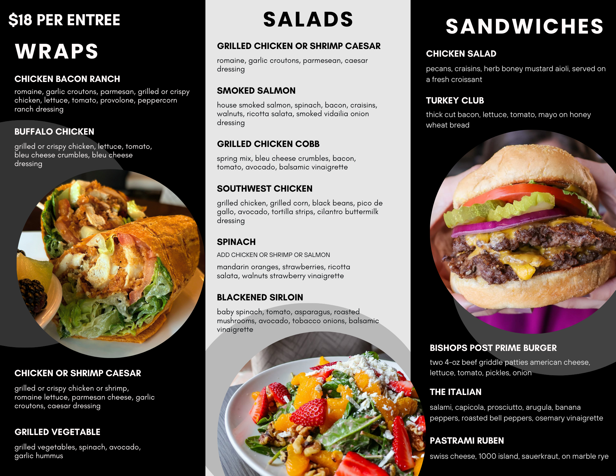 In addition to hosting private events, Bishop’s Post is a full-scale catering operation that can bring our bold and flavorful menu to whatever location you desire. Our chef will work with you to create a menu that fits your personal style, taste, and budget. Whether it’s a sit-down meal, cocktail party, or casual brunch; we’ll bring the food that will impress your guests.